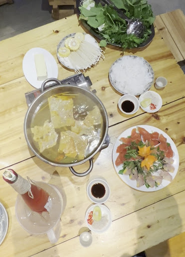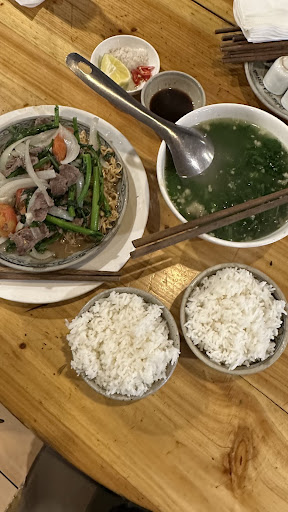 This place was hoppin' on a Wednesday night while all surrounding restaurants were empty. Every table came for hotpot so that is what we got. They have 4 different kinds chicken, horse, fish (salmon and sturgeon) and mixed (all 4 proteins). The sturgeon was the best in the hotpot. The horse meat was really tough but went really well with the citrus salt dip. I really wish they had beef because it would have been amazing with the dip. But I wanted to try the local food and this is what I got. We sat there eating for a good two hours. There was so much food, The hotpot for 2-3 defintiely fed 3-4 people. The place is filled with mostly locals. There were many foreigners that walked in but 90% walked out after seeing the menu. Another dish I saw on most tables is the com lam, sticky rice cooked in bamboo, I wished I could've tried it but there was way too much food on my table. There was also entertainment during dinner, I guy playing some sort of flute. He was amazing, we really enjoyed the music and so did everyone else in the restaurant. Everyone got out their phones to film him and things got a lot more lively when he played. This restaurant is a must for the local food...