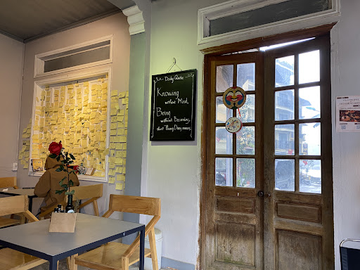 Read moreOkay, one of the best meals i had in Vietnam, in Sapa the best by far. Even if you not vegan you should try eat there. We took the fried spring rolls like everybody does, it was delicious. Also took the tomato and cream spaghetti, also unbelievable. Finally good vegan food and a good food in sapa. I had to try the deserts also after finally having something sweet that is vegan. We took all the vegan deserts (cookies, chocolate and cheesecake) the cheesecake was amazing and the cookies also, the chocolate was ok but everything else was amazing. The atmosphere there also is very special with many notes stick on the wall written by people who ate there (don't forget to write one too). Just remember that they have a place for coffee and the restaurant is above (also they have a break at lunch in the restaurant). They also offer takeout and one last thing, they have a cat there so if you are allergic like i do, pay attention and they will keep the cat...