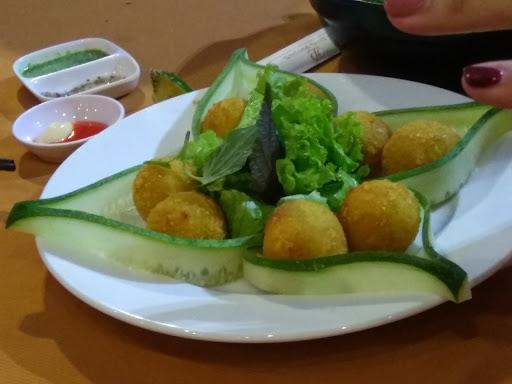 Read more출장갔다가 다녀왔습니다.항상..2층 테라스 근처에서 밥 먹었는데, 경치 좋은 편이에요... 모닝글로리(rou moung(라무엉)에 쌀밥 조합 일단 맛있었구요.. 사진에 있는 고구마(?) 으깬 튀김도 먹을만 했습니다. 그리고 데리아키소스로 조린 생선이랑 돼지고기.. 이거도 맛있구요. 다만, 현지인이 강추한 닭고기+여주 같이 끓인.탕은 역시 너무 쓴맛이라 많이 못먹었습니다.