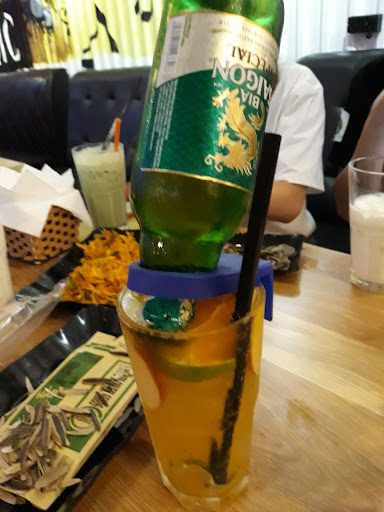 Quán nằm tại vị trí khá tốt, trên trục đường Lê Quý Đôn rộng rãi, thoáng mát gần với công viên Kỳ Bá. Không gian bên trong rộng rãi, cao , nội thất ok , à quán có dịch vụ hát karaoke với dàn âm thanh tốt =))) sân khấu đẹp , ánh sáng lung linh 😂, đồ uống cũng oke tuy nhiên hạt hướng dương có phần chưa được tốt, hơi khét =]]]] , nhân viên phục vụ tốt và hay tư vấn cho khách món nước dừa nguyên quả nha ( chắc món tủ...
