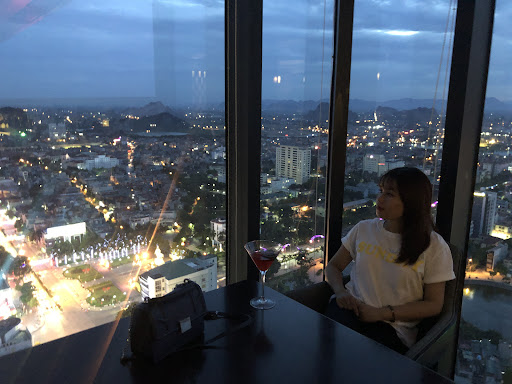 Read moreLà vị trí đẹp để ngắm TP Thanh Hoá từ trên cao, được cả 3 góc view khác nhau. Đồ uống từ 120k đổ lên, các loại cocktail, moctail uống cũng ổn. Mình gọi ly cosmopolitan, ko xuất sắc nhưng chấp nhận được. Nên đến đây lúc 17h để ngắm hoàng hôn. Hôm mình tới thì nhiều mây nên mặt trời ko dc đẹp, hơi tiếc. Muốn chụp ảnh kiểu deep deep với hoàng hôn thì chỉ có 1 bàn phía ngoài, bên góc trái. (Hôm đó có khách khác ngồi rồi, mình cũng ko chụp dc ảnh deep). Chờ thêm khi tp lên đèn thì chụp thì phía ngoài ấy lại... tối thui, hỏi nvien nói ko có đèn. Mình hơi bất ngờ vì skyview cafe thì ăn tiền là ở dãy bàn đặt phía ngoài này. Ngta sẽ chuộng kiểu ngồi ngoài cafe ngắm tp, nhưng ko lắp đèn luôn, vậy ai đến buổi tối thì xác định ngồi salon trong nhà @@ Thái độ nhân viên lịch sự, nhã nhặn. Tổng...