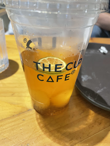 Read moreThe Cup Cafe nằm trên đường D1 chung cư biconsi, phường phú hòa, thủ dầu một, bình dương gần vòng xoay xe ra vào khá dễ, kể cả xe hơi. Quán cafe mở 24/24 nên rất phù hợp cho các bạn trẻ cày đêm với chi phí thấp. Quán được thiết kế mặt ngoài hoàn toàn bằng gương nên đón ánh sáng trời khá tốt nếu muốn riêng tư bạn có thể hạ màn che xuống. Về không gian quán được chia thành 02 không gian, trang trí khá hiện đại nhưng cũng khá thiên nhiên với cây xen vào kết hợp với ánh sáng vàng và nhạc khá chill. Bên ngoài là khu dành cho những bạn thích khí trời hay sợ ảnh hưởng của dịch covid, bên trong chia thành 2 phần gồm 1 trệt và lầu. Không gian quán khá rộng với các bàn được chia ra nhiều loại bày trí khác nhau phù hợp với nhiều nhu cầu. Quán không quá ồn, nhìn chung nếu làm việc cũng không đến nổi. Quán phục vụ cả đồ ăn cũng khá phong phú có cả món khô và nước dao động dưới 50 nghìn. Về phần nước ở đây cũng có nhiều món lạ so với những chuỗi cà phê khác, giá dao động dưới 60 nghìn. Mình order 01 phần trà xoài kem phô mai, size S với giá 39 nghìn. Ở đây có phục vụ nước uống thêm, không phải nước lọc như nhiều chỗ mà là nước detox cam cũng khá hay. Về phần phục vụ nhân viên ở đây khá nhiều, phục vụ khá chuyên nghiệp, đồng phục giống nhau đều mình cảm thấy thích là các nhân viên đều đeo găng tay đen tăng thêm chuyên nghiệp và phòng chống dịch bệnh trong bối cảnh như hiện tại. Nhà vệ sinh ở đây là 01 hành lang dài khá đẹp bày trí kiểu nhật bản, hình như là sử dụng chung với quán ăn kế bên nhưng khá sạch sẽ. Tốc độ wifi ở đây cũng là 01 điểm cộng, với tốc độ ổn định và khá nhanh. Đánh giá mình cho 10/10 điểm để làm việc 24/24 giờ cho các bạn trẻ với giá trị mang lại thì nó đáng để các bạn...