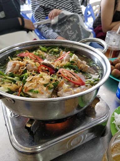 Read moreDọc đường này thì có nhiều quán lẩu cá đuối, mình coi review lẫn xem lượng khách để lựa chọn quán này. - Món ăn: quán có nhiều lẩu cá như cá bóp, đuối, dứa, diêu hồng....nhưng hầu hết các bàn đều gọi lẩu cá đuối. Thức ăn nhìn chung thì khá mặn, được cái lượng đồ ăn khá nhiều nên ăn kiểu gì cũng sẽ no:D + Lẩu cá đuối: món này coi như signature của quán. Hầu như là đã làm sẵn chỉ cần để lên bếp cồn chỉ để hâm nóng. Điểm cộng là cá và măng tương đối nhiều; phần mình gọi là lẩu nhỏ nhất - 150k - nhưng cũng được 6 miếng cá to vừa phải; măng, giá, bạc hà gấp được cũng khá. Điểm trừ là lẩu chua quá, nên ăn nhanh để lâu nước sắc lại thì vừa chua vừa mặn. + Đầu cá hồi chiên mắm: món này ăn được, đưa cơm, thơm mùi bơ magarine. - Không gian: rộng rãi, vừa có ngồi trong và ngoài, mùa hè nên ngồi trong có quạt. Quán nhậu nên khá dơ, các bạn nữ đừng nên trông chờ nhiều =)) - Dịch vụ: tuy đông nhưng phục vụ khá nhanh, order hay bị quên. Quán nhậu rất ồn nên phải vừa "rống" gọi order vừa nhắc kẻo bị quên. - Giá cả: so với lượng đồ ăn thì quán khá rẻ. Mình đi 3 người ăn no nê lặt lè cũng tầm 100k/người. Quán theo phong cách nhậu bình dân nên hơi dơ, đồ ăn tạm. Đi theo kiểu bạn bè và các anh...