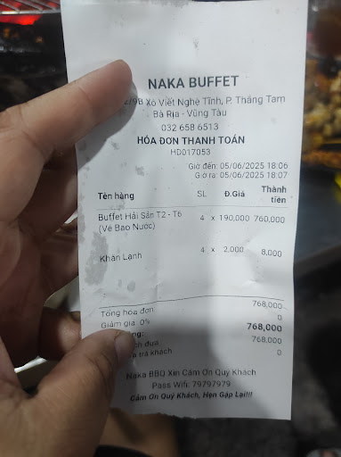 Mình đến quán lúc 19h. Và mình sau khi thanh toán thì vào quầy ăn gần như không còn hải sản trong bể. Tức là quán ngừng refill, hết đồ ăn vẫn nhận khách. Quán này ngừng refill chắc tầm lúc 18h. Vì 19h mình vào đã hết hải sản, line thịt thì còn.