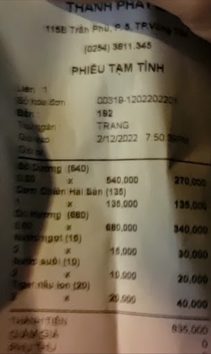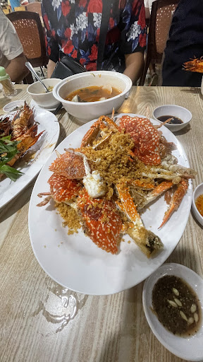 Food: Fresh food, I order fresh seafood at the counter and then choose how to prepare it. I think steaming and boiling is delicious because fresh seafood is very fragrant and sweet, while stir-frying will make the seafood dry, and the restaurant doesn't season well. I ordered snails stir-fried with garlic, crab cooked with garlic, grilled shrimp... but found it dry, the seasoning was not good like the snail shops outside. Service: The restaurant is very crowded but the seats are spacious so it's easy to find a table. The restaurant is crowded so the service staff can't keep up, ordering ice and waiting for the staff to get it for a long time. The ice in the box hasn't been replaced yet, it's all melted Atmosphere: I don't have a view of the beach so it's cool. I sat at a table next to the sea so I quite liked it, but because the restaurant was crowded, I didn't enjoy it very much and wanted to eat quickly and go somewhere else for fresh air. If you want to eat delicious food, you should bear it because good restaurants are...