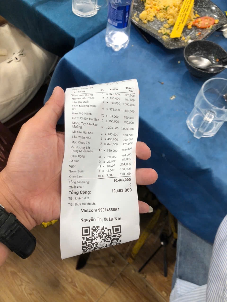 Read moreĐó giờ mình không bốc phốt ai nhưng bức xúc quá phải lên nói thôi. Gọi món: mọi người xem hoá đơn xem, có ít món không, nhà mình toàn trẻ em là chủ yếu không ăn được nhiều nên sẽ gọi 2 phần cho 1 món (nhưng số lượng món thì rất nhiều), thấy nhà mình gọi ít nên người ghi món có đề xuất thêm 1 - 2 phần cho mỗi món, nhà mình có bảo là từ từ ăn hết sẽ gọi thêm, nhưng nhân viên lại thái độ “ chị nhìn xem cái bàn chị có bao nhiêu người mà chị gọi 2 phần “ Thứ 2: món ăn, phải nói chữ DỞ, cực kì DỞ, một người dễ ăn như mình thì thấy rất dở thì các bạn nên hiểu, ốc hương xào trứng muối thì lạnh ngắt mặc dù mới đem ra, rau muống thì sống nhăn. Mọi thứ trên bàn đều lạnh tanh đến mức gọi nhiều nhưng nhà mình không ăn được gì, phải bỏ bọc về hâm lại =)))) Thứ 3: Thái độ của nhân viên RẤT KHÓ ƯA, ban đầu nhà mình rất dĩ hoà vi quý vì biết các bạn làm mệt, phải chạy bàn nhiều nên không muốn làm khó, chỉ nói nhẹ nhàng “ em ơi em, lấy cho anh cái này, lấy cho anh cái kia” đến lần 3 lần 4 thì các bạn giả vờ bị ĐIẾC, giả vờ không nghe, kêu 2-3 lần gật đầu rồi đi chỗ khác. trời mưa lại ngồi trên lầu, tấm bạt che mưa bay, tạt nước ướt hết người em mình, nhà mình chỉ kêu, “em chỉnh bạt thấp xuống mưa quá ướt hết người”, các bạn nghe “dạ dạ” rồi cũng đi luôn, nhắc 2,3 bạn chứ không phải 1 bạn. Đến lúc mưa càng lớn gió thổi càng mạnh làm ảnh hưởng nhiều khách, thì các bạn mới nhìn cười cười sau đó mới giải quyết vấn đề, mình nhấn mạnh là các bạn vừa nhìn nhà mình bị ướt vừa cười rồi mới chỉnh. Sẽ không quay lại, đồ ăn dở mà giá mắc, có đáng...