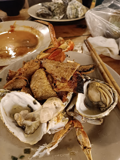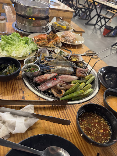 Read moreMình vô tình xem trên gg maps rồi đến thôi. Hồi đầu cũng không hy vọng gì mấy nhưng ngon hơn kỳ vọng của mình nữa. Giá vé: 249k + 30k nước (đây là giá gốc rồi, không thu thêm phí VAT) Hôm mình đi là khoảng gần 7h mà quán đã full bàn rồi, mình chờ cũng kh lâu lắm là có bàn ngồi. Ai kh muốn chờ thì có thể đặt bàn trước. Mực, nầm heo, hàu: tươi ngon ngoài sức tưởng tượng =))) mực nướng lên dai giòn vừa phải. Nầm heo cũng ngon nữa, tươi và không bị hôi. Hàu con vừa phải, múp rụp, mình và bạn mình - 2 đứa chắc quất cũng gần 20 con hàu. Ốc bullot, bạch tuộc: khá ổn, dai giòn sần sật. Nếu có sốt sa tế cho tui nướng bạch tuộc chắc sẽ thơm hơn. Cua, ghẹ: tươi sống, nhưng không được chắc thịt lắm. Kinh nghiệm của mình là lựa mấy con nhỏ, roi roi thì sẽ có gạch và thịt đầy (mấy con to thường là con đực và kh chắc thịt mấy). Mình quất 2 con ghẹ và 6 con cua. Mấy bạn có thể kêu cái lẩu để nấu tụi nó dễ hơn, mình nướng nên hơi khó xíu. Thịt bò: ăn cũng được, mình ăn lấy vị chứ không nướng bò nhiều. Quầy line đồ ăn có sẵn cũng khá đa dạng: mì xào, cơm chiên, ốc bươu hấp xả, ốc bông xào me, gà sốt thái, ... Nhưng mà tui no quá không ăn thêm mấy món đó được. Gia vị để nướng có Mỡ hành: hơi mặn so với tui Sốt phô mai: hơi ngọt, bạn nào ăn nhạt thì cho ít thôi nha. Gia vị để chấm: nước mắm ăn ốc, muối ớt đỏ, muối ớt xanh, muối tiêu. Cá nhân tui thấy muối ớt đỏ của quán hợp với hải sản hơn nha. Bữa hôm đó ăn rẻ và rất no luôn, tui sẽ ghé lại nếu còn tới...