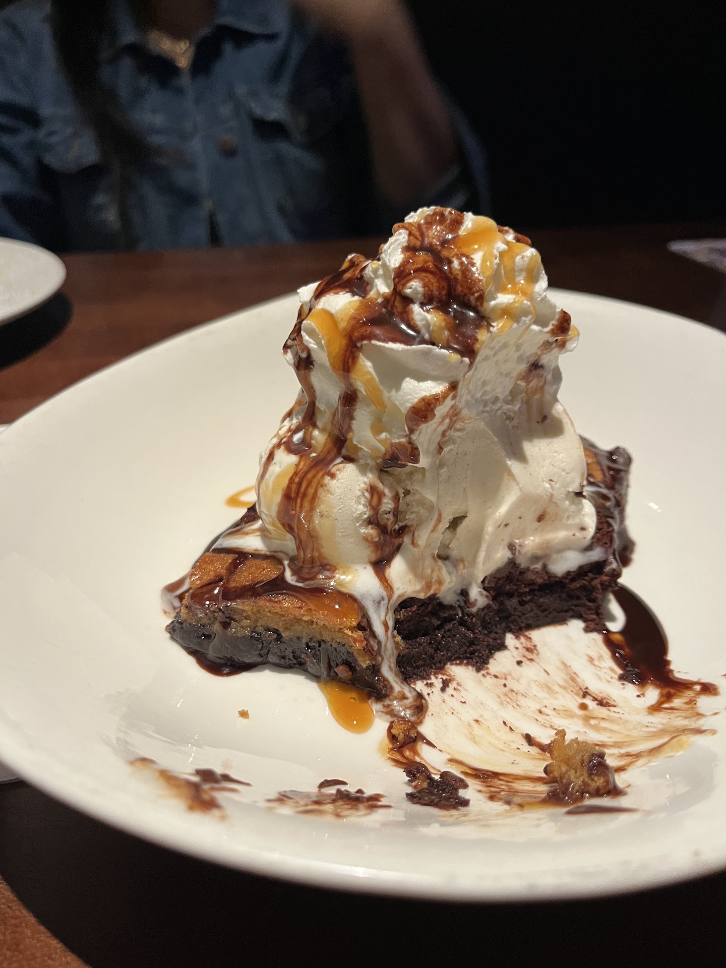 A friend and I went here on a whim after seeing Lightyear and I had never been to Yard House before but always heard decent things. There was a wait which if there’s no sitting room you have to stand in a hallway in between the entrance, along the bathrooms to where you check in to be seated. So it makes it crowded. I tend to not have a short temper and I have a lot of patience though. After waiting about 15 minutes we were next to be seated and they gave the 2 of us a large booth which was great. The food was PHENOMENAL. I got the Whiskey Glazed Salmon and it was absolutely fantastic. The glaze is delicious, it’s on the sweeter side but has a slight smokiness to it. It comes with extra sauce which I appreciated because I love sauces. The vegetables were wonderful too. I ended up getting dessert which was too big for me so I couldn’t finish but that was delicious as well. Our waitress was awesome, even though the place was busy she still made sure to come by to check on us and ask if we wanted refills, and if we used the call server on the table device she came right over. I definitely will be going back to a Yard House at some point, just for that salmon!