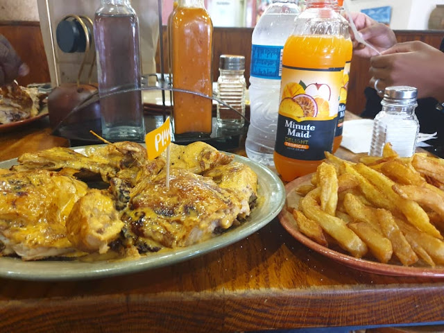 Nandos is a great place to grab lunch, be it you want to sit in (as long as you don't mind music that's in the loud side) or on the go. Depending on how attracted you are to design, we must admit that their colourful menu will definitely catch your tasteful eye and will tempt you not to walk out without grabbing one if their goodies. The meals cater for loners, those sharing and family-size meals. There's an option of pap too for those who love their meal on the traditional side so there's no reason why you can't enjoy Nandos chicken and sides the way you'd imagine it. Service at the till is quite good and quick and the order does take the appropriate amount of time they inform you to prepare (sometimes a little longer depending on what you've ordered. Ours took longer because we had two batches of chicken prepared differently and an assortment of other smaller sides too). While I can say that the menu has an interesting range of foods and flavours for a place that prepares and serves only chicken as it's meat, feel free to choose from four flavours namely lemon and herb, mild, hot and very hot as indicated on the "peri-o-meter" (see on menu). There's also a range of soft drinks and bottled water to select from. Should you like to have extra sauce, why not purchase your favourite one or one to try out? It's right there behind the counter.